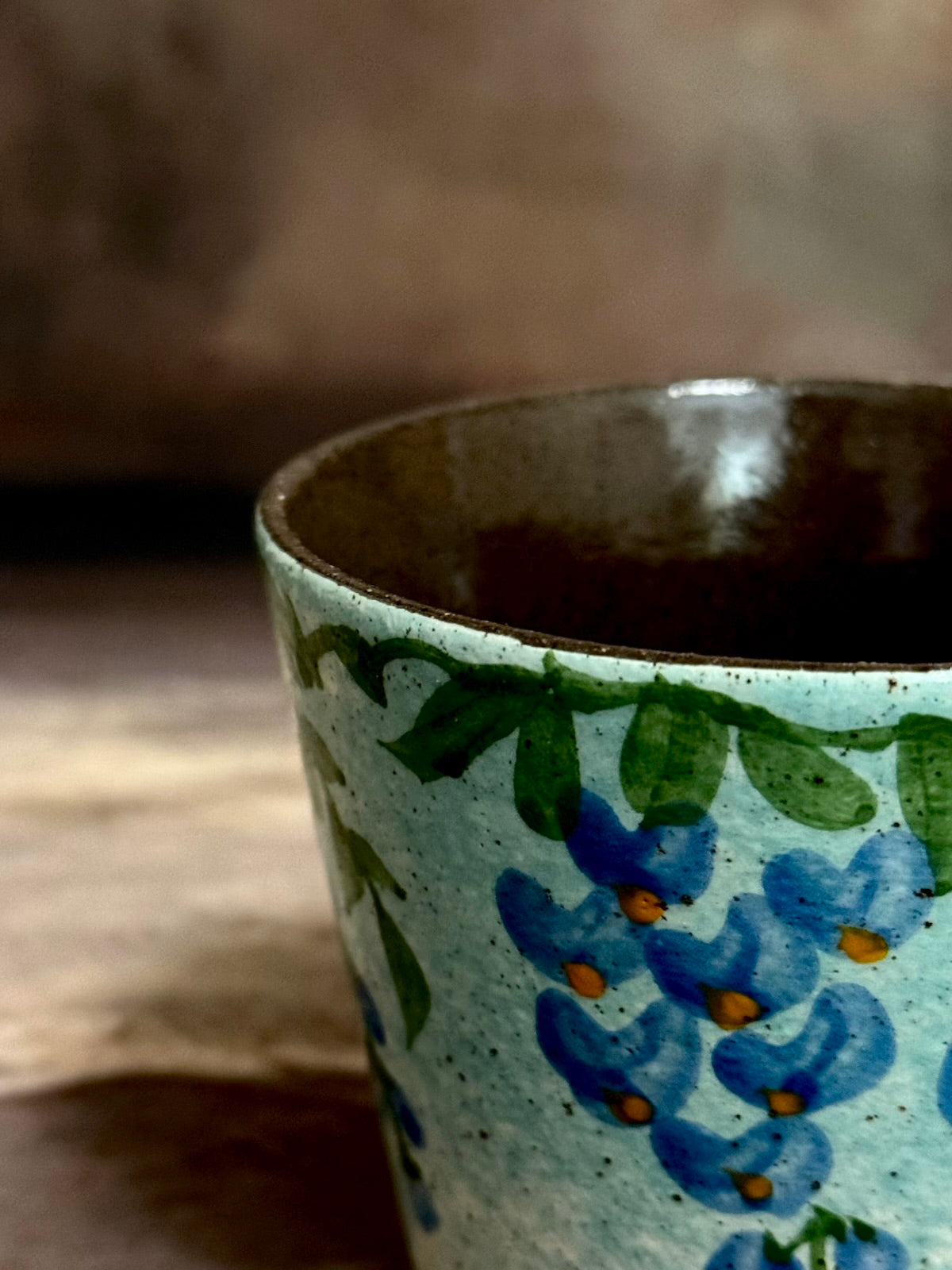 This Morning Mist & Blue Wisteria Hand Cup draws inspiration from Japanese gardens at spring dawn—where soft white mist wraps around blue wisteria vines, flower clusters hang like drops of sky from the branches, and the garden feels like a quiet dream at first light. Its pale blue base mimics the hazy mist of early morning, with raised blue wisteria that looks like it’s floating in the cool air. The curved cup fits gently in your hand, making every sip feel like stepping into a misty Japanese garden at dawn, a reminder that magic exists in the quiet, dreamlike moments of life.