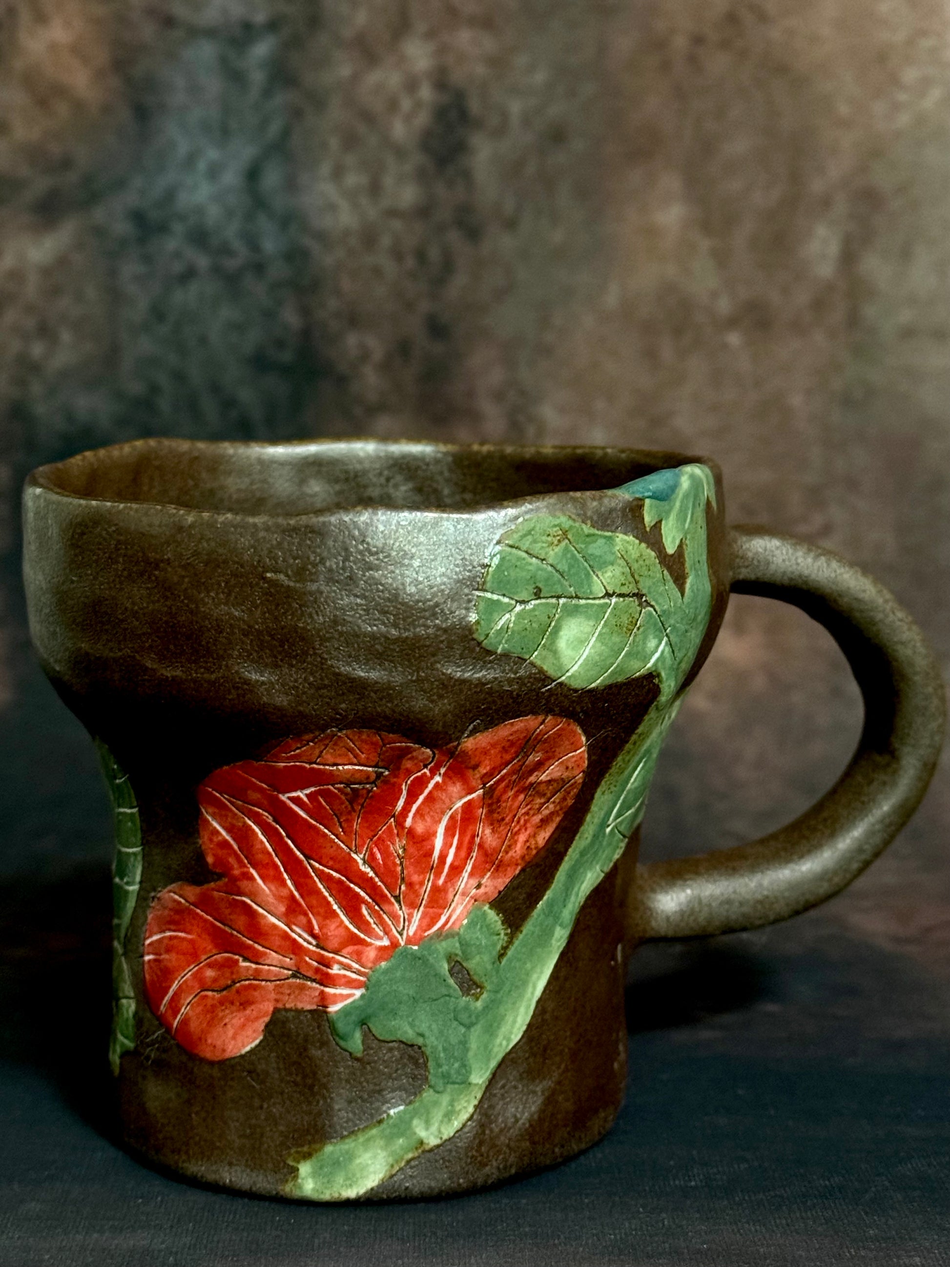 Inspired by the wild roses that grow untended along English country lanes, this Wild Rose Crackle Mug is a celebration of life’s unpolished, warm moments. Its vivid red bloom evokes the sight of a wild rose catching the first light of day, while the soft, earthy tones feel like the damp soil beneath it. It’s not about perfection—it’s about the steam curling into sunlight, the first sip of coffee that wakes your senses, and the quiet hope of a day full of small, unplanned joys. It’s a reminder that the most beautiful parts of life aren’t the ones we plan, but the ones that unfold gently, right in front of us.